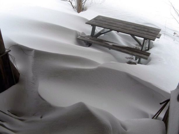 So…..it looks like I can attach photos once I hit a wifi spot….two pictures attached to indicate my form of exercise (wood splitting) and my fascination with form and light ( snowdrifted table)
